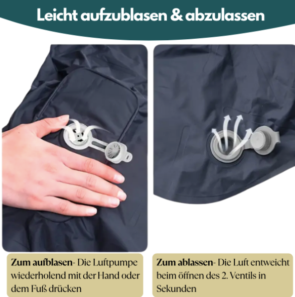 Diese ultraleichte Isomatte ist der perfekte Begleiter für Camping, Wandern, Outdoor-Abenteuer und Festivals. Dank des praktischen Ventils lässt sie sich in wenigen Sekunden aufpumpen und genauso schnell wieder entlüften. Zusammengefaltet ist sie extrem kompakt - ideal für den Rucksack oder die Handtasche. Komfortabel, platzsparend und einfach in der Handhabung!